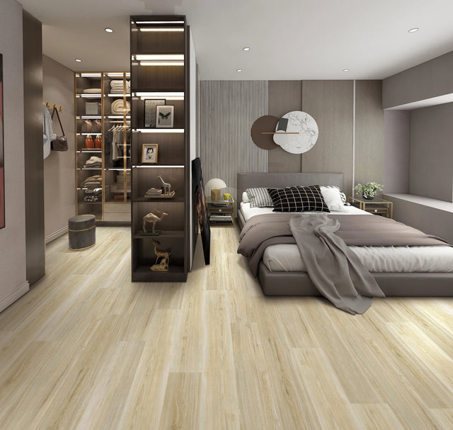 Light the way with one of our most popular floors featuring extra-long planks made to make rooms feel bigger and more open. 9” wide x 60” long with 6.5 mm thickness.